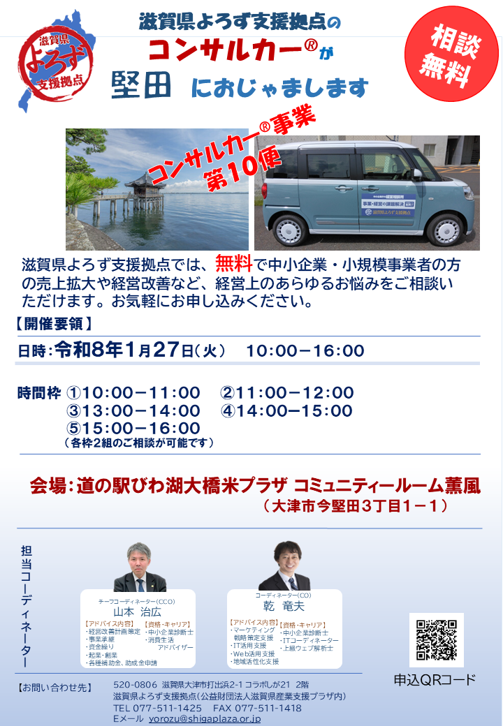 ~滋賀県よろず支援拠点のコンサルカー®が堅田におじゃまします~