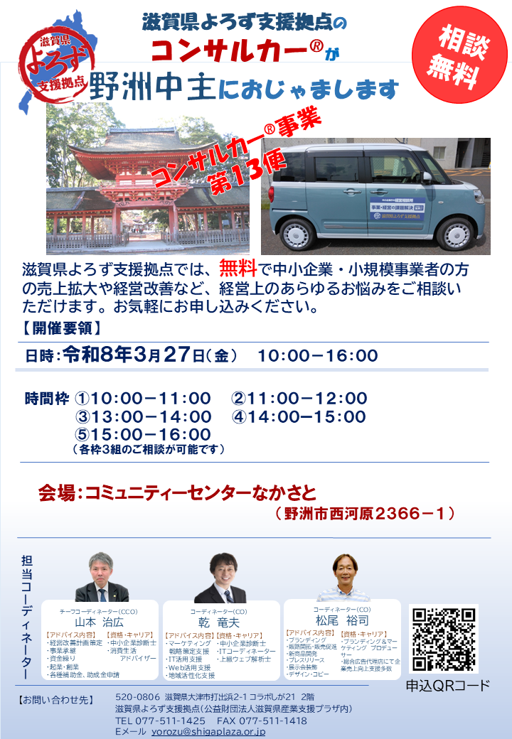 【3/27】コンサルカー®(コンサルタント・カー)第13便《野洲中主》