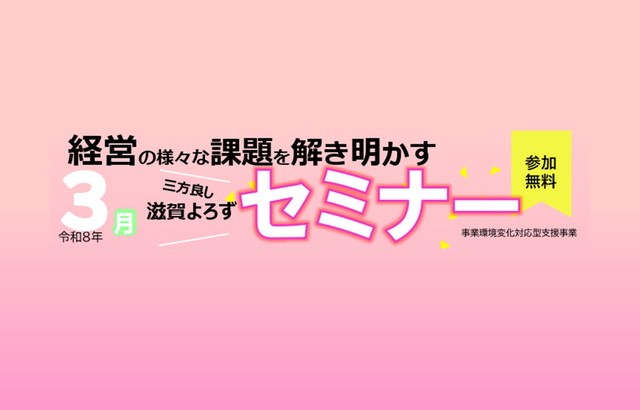 - お申し込み時にいただいた個人情報につきましては、本セミナーの実施、調査・分析の他、滋賀県産業支援プラザおよび滋賀県よろず支援拠点からの各種ご案内・情報提供にのみ利用させていただきます。